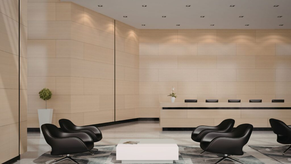 Receptionsytor och väntrum är särskilt kritiska kontaktpunkter. Här samverkar färg, ljus, material och rumsvolym. En genomtänkt färgsättning kan: